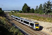 168326 & 168113 pass Langford Lane, Wendlebury, on 17 September 2017 with the 1Y15 10:11 Oxford to Marylebone Chiltern Railways service, having just passed 172103 & 172102 working the 1T19 09:33 Marylebone to Oxford. |