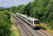 168214 passes Claydon on 19 July 2024 with the 1H51 14:11 Birmingham Snow Hill to Marylebone Chiltern Railways service. The trees now hide the old Fenny Compton to Woodford Halse line, which would otherwise be visible in the background. |