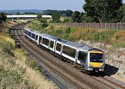 168324 passes Charlton-on-Otmoor on 15 August 2016 with the 1Y70 18:29 Oxford Parkway to Marylebone Chiltern Railways service. You can tell this a newly upgraded line, as there isn't a tree, or even a bush, next to the lineside fence! |