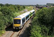 168323 & 168216 pass Great Bourton on 15 August 2025 with the 1H62 15:45 Birmingham Moor Street to Marylebone Chiltern Railways service. Although still a reasonably open location, even here there are more trackside bushes than a few years ago. |