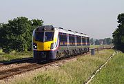 180113 passes Thorpe Grange on 17 June 2010 with the 1H02 09:48 Kings Cross to Hull First Hull Trains service. Unlike Noblethorpe level crossing, which because it only connects a farm with adjacent fields sees virtually no traffic, the level crossing that can just glimpsed through the heat haze by the signal in the far distance (Joan Croft) saw constant use when this picture was taken. It has since been replaced by a bridge. |