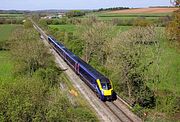 180104 passes Ascott-under-Wychwood on 15 April 2014 with the 1P35 08:26 Worcester Foregate Street to Paddington First Great Western service. The long lens has compressed the perspective, making the Cotswold Hills in the background look much more impressive! |