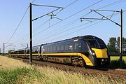 Looking impressive in its stylish new black livery, 180101 speeds past Thorpe Grange with the 1A61 09:18 Sunderland to Kings Cross Grand Central service on 17 June 2010. After a delayed introduction into service and protracted problems when in use by their initial operator, First Great Western, the Class 180s seemed to have turned from unwanted embarrassment to the units that all aspiring operators want. In addition to Grand Central, First Hull Trains and Northern Rail acquired the units, with other operators eying them up. |