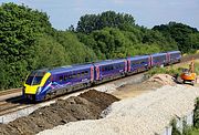 180111 makes good use of its 125mph top speed as it passes Frinkley Lane (near Grantham) with the 15:06 Hull to Kings Cross Hull Trains service on 25 July 2009. The last time I saw this unit is was working for First Great Western on my local Cotswold Line. |