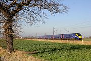 With Low Farm just visible on the right, 180101 catches a brief patch of very welcome early spring sunshine at Eaton (near Retford) on 10 March 2012, as it heads south with the 1A63 10:22 Bradford Interchange to Kings Cross Grand Central service. |