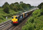 It was barely light when 20308 & 20309 set off with the Spitfire Railtours 1Z37 06:07 Gloucester to Penzance 'Kernow Voyager' railtour on 25 June 2011. Here they are a few miles into the journey, passing Little Haresfield in terrible light. The forecasters had correctly predicted poor weather, but the prospect of this pair of 20s, plus the bonus of 2 x 37s and 2 x 31s, all on railtours to the Mazey Day celebrations, made it virtually essential to venture out for the heritage traction feast. |