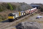 20309 & 20311 trundle slowly along the up loop at Spetchley on 29 April 1999 with the 7M53 13:58 Bridgwater to Sellafield nuclear flask. Although already running late, it then sat in the loop for 40 minutes, allowing another picture to be taken. |