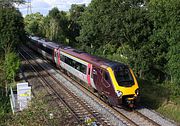 221144 & 220015 just manage to dodge he shadows, as they speed past Thrupp on 11 August 2020 with the 1O20 13:27 Manchester Piccadilly to Bournemouth CrossCountry service. Like most Voyager operated trains, this has been doubled up during the coronavirus pandemic. |