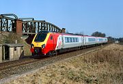 A meeting of Class 221 units at Dosthill on 1 May 2004. 221144 heads northwards with the 08:30 Birmingham New Street to Newcastle Virgin Trains services and passes an unidentified unit heading the 06:00 Leeds to Bristol Temple Meads train. 221144 no longer exists, as in 2010 its two centre coaches were removed to allow 221142 & 221143 to be converted into five car units. Therefore the driving car pictured here (and the one on the other end) are now spare. It also leaves 221141 as the only four car 221 set. |