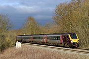 Running as the 1Z88 14:33 Birmingham New Street to Southampton Central CrossCountry service, in place of the 1O88 07:48 Glasgow Central to York, which was terminated at York due to a fatality, 220017 approaches Tackley on 15 February 2019. |