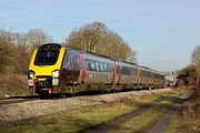 221141 passes Stoke Prior on 12 February 2018 with the 1V47 08:07 Manchester Piccadilly to Paignton CrossCountry service. This is one of only four four coach Class 221s, making them look like Class 220s without reference to the number. |