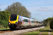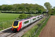 221144 passes Heyford on 11 May 2024 with the 1M26 06:33 Bournemouth to Manchester Piccadilly Virgin CrossCountry service. It's not apparent from the picture, but the field in the foreground was extremely boggy and waterlogged! |