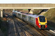 220006 passes Up Hatherley on 3 April 2025 with the 1M29 09:01 Bristol Temple Meads to Manchester Piccadilly CrossCountry service. The blackthorn is still in bloom in the background, soon to be replaced (in a couple of weeks) by similar flowers on the hawthorn bushes in the foreground. |