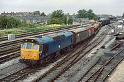 | Having worked down from the West Midlands with the 6V19 06:32 Bescot to Oxford Speedlink service on 14 June 1983, 25051 crosses over from the up main line into Hinksey Yard, prior to heading back north light engine. Normally I wouldn't bother taking a light engine movement such as this, but a Class 25 in perfect lighting is always worth recording. | ||