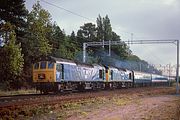 25313 & 25249 pass Berkswell on 28 September 1986 with the Hertfordshire Railtours Euston to Liverpool Lime Street 'Mersey Ratcatcher' railtour. With the imminent threat of complete withdrawal of the class, a number of railtours were being organised around this time, with this one supposedly being the official Class 25 farewell tour. |