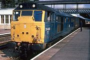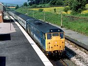 31463 passes slowly through Moreton-in-Marsh station on 27 June 1987 with the Southern Electric Group's Waterloo to the West Midlands 'Walsall Concerto' railtour. 31463 was a last minute replacement for 50023 Howe, which had failed at Reading. This was a bonus, as although I have obviously got lots of pictures of Class 50s on the Cotswold Line, Class 31s were far less common. |