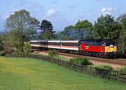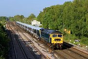 One of the highlights of mid June evenings in the Oxford area used to be the various special trains returning from Royal Ascot. Culham was a favourite location, although by the new millennium the lineside bushes were beginning to cause shadow problems, as can be seen in this view of 47780 heading north on 21 June 2001 with a returning Ascot special. |