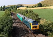 47790 Galloway Princess passes an exceedingly gloomy Compton Beauchamp on 7 July 2012 with the 1Z13 14:52 Salisbury to Oxford Northern Belle luxury lunch excursion. After a quick reversal at Swindon, it would shortly be retracing its route as far as Didcot, this time with 47805 leading. |