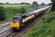 47774 Poste Restante passes Tackley on 15 July 2001 with the 1Z92 Victoria to Leamington Spa VSOE luxury charter. The passengers would obviously be impressed by the beautifully maintained Orient Express coaches, but probably less so with the scruffy unwashed Res loco up front! |