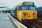 50002 Superb climbs Goodrington Bank with the 16:30 Paignton to Kingswear service on 16 October 1993, whilst taking part in the Paignton & Dartmouth Steam Railway's Class 50 Spectacular. Perfect low autumnal lighting, waves on the beach, and a blue almost unrefurbished (if you ignore the headlight) Class 50, what more could you ask for? Perhaps the Goodrington Water Park in the background above the train doesn't exactly add to the view, but otherwise an excellent picture. |