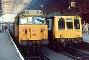 The fast and slow means of getting from Oxford to London in the 1980s stand next to each other at Paddington station on 22 November 1986. 50005 Collingwood wats in platform 9, with Pressed Steel Class 117 DMU L415 (51351, 59503 & 51393) in platform 10. |