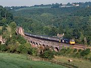 50002 Superb crosses Hookhills Viaduct on 20 June 1993, whilst en-route from Paignton to Kingswear during the Paignton & Dartmouth Steam Railway's Diesel Gala. Superb never quite looked like this in BR service, as after refurbishment it was outshopped in large logo livery. Only six locos looked exactly like this (50001, 50006, 50013, 50017, 50019 & 50047). |