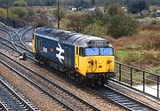 50008 Thunderer passes Grove on 5 October 2024 with the 5M82 09:14 Bristol Barton Hill to Wembley, towing Chiltern Railways DVT 82309. Although it looks like there isn't a cloud in the sky, a solitary cloud had blotted out the sun a little while earlier, but thankfully it had melted away just in time! |