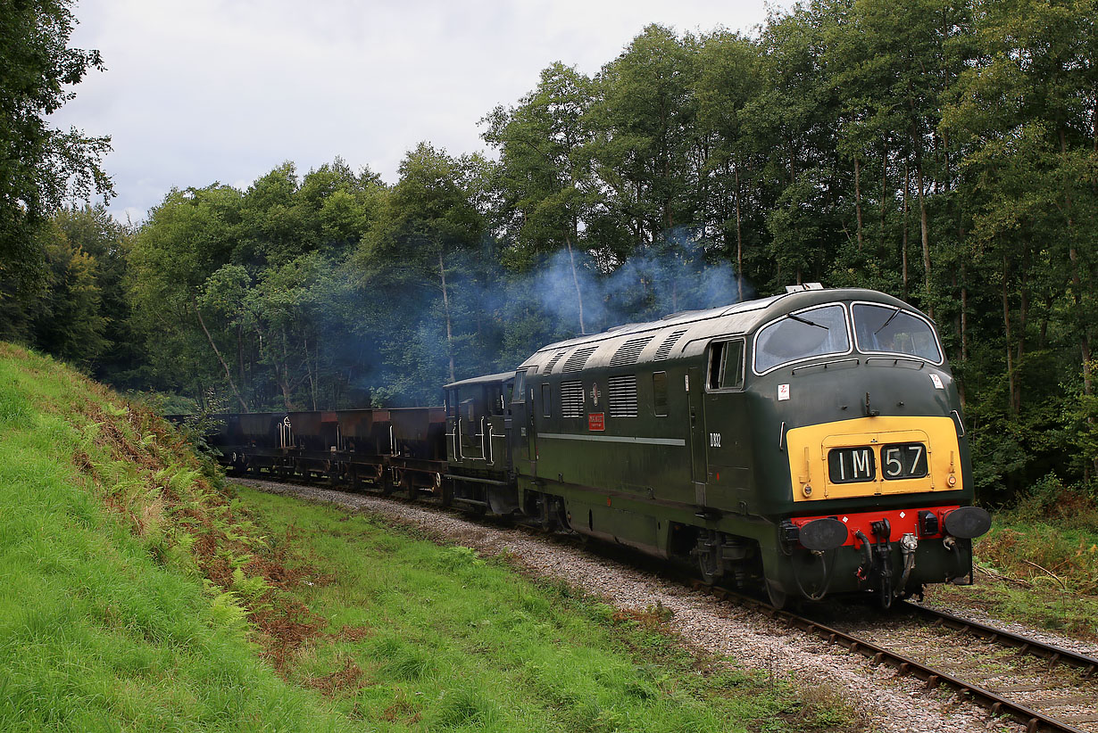 D832 Onslaught passes Upper Forge on 15 September 2018 with the 12:19 Parkend to Lydney Junction freight, during the Dean Forest Railway's Diesel Gala. Several of these trains were run, with passengers able to travel in the guards vans at both ends of the train. |