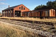 Broadway Goods Shed pictured on 14 October 1979. The Cheltenham to Stratford-upon-Avon line closed in 1976, and I just managed to arrive in time to photograph the track before lifting, although not before the rails on the up line had been removed from their fastenings, as seen here in the foreground. The GWR built shed survives, although the corrugated iron extension on the right has since been removed. |