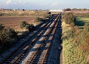 Honeybourne West Loop Junction, pictured on 14 October 1979. This is the view looking back towards Honeybourne West Loop Signal Box, which just be seen underneath the bridge in the background. The line in the immediate foreground is the curve linking the Cheltenham to Stratford-upon-Avon route with the Oxford to Worcester 'Cotswold Line'. |