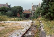 When the Midland & South Western Junction Railway closed as a through route in 1961, a short section survived at Swindon, both north and south of the junction with the Great Western Mainline at Rushey Platt. The southern section to Swindon Town station was lately used as a roadstone base for the construction of the nearby M4 motorway in the early 1970s. The end of the line was just short of the bridge over Evelyn Street and is shown here on 22 August 1978. No buffer stop of any kind was provided! The track was lifted shortly after this picture was taken, and although the bridge whose parapets can be seen still survives, it would be impossible to take this picture today, as you would be inside somebody's front room in one of the newly built house on the site! |