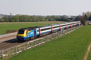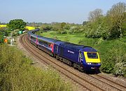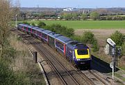 43063 approaches Ardley on 7 April 2013 with the diverted 1L14 08:45 Swansea to Paddington First Great Western service. The train had travelled to Banbury via Oxford, and was now heading for London via the Chiltern Line. |