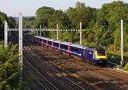 43065 passes Bishop Wood on 26 July 2008 with the 1A63 17:30 Sunderland to Kings Cross Grand Central service. Although it was disappearing into high cloud, the late evening light was just holding out long enough for this picture. |