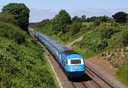 43062 John Armitt leads the 1Z16 16:43 Derby Railway Technical Centre to Old Oak Common Network Rail New Measurement Train though Tackley on 21 May 2009, with 43014 on the rear. There are very limited choices when it comes to photographing southbound trains on the Banbury to Oxford line if the sun is out in the late evening, so this newly created spot near Tackley station seemed as good as anywhere for a picture of the 'Flying Banana'. Note the remnants of the cleared vegetation in the foreground, the removal of which has opened up the view nicely. |