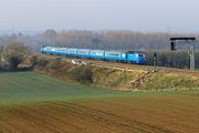 43059 passes Easenhall on 2 November 2020 with the 5Z45 13:56 Rugby to Crewe Holding Sidings Locomotive Services Ltd crew training run. As this passed me ten minutes before its departure time, it was approaching a red signal, at which it would be held until nearer the right time, allowing a passenger train to pass. |