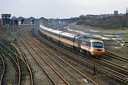 With the appropriately named Brunel House (a former orphanage), dominating the background, 43032 leads the 1E30 06:30 Plymouth to York service past Horfield on 13 March 1989. As can be seen by the wide trackbed, this was once a four track mainline, the track having been rationalised just a few years before this picture was taken. |