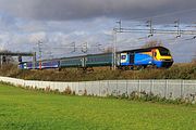 43067 passes Shaftholme Junction in miserable light on 24 November 2008 with the 1A62 12:30 Sunderland to Kings Cross Grand Central service. Although it is not really visible from this angle, Joan Croft Junction is situated in the background of this view. |