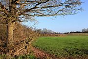 43129 passes Whitehill (between Combe and Finstock) on 23 March 2017 with the 1W25 12:21 Paddington to Worcester Shrub Hill GWR service. In the field next to the line just to the right of this picture is North Leigh Roman Villa, which includes a fine mosaic pavement. |