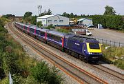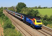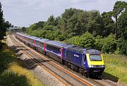 43123 passes Gateforth on 17 June 2010 with the 1A62 12:30 Sunderland to Kings Cross Grand Central service. Note the common HST problem of a broken horn grille. They just aren't strong enough to survive the impact with a pigeon (or anything else)! |