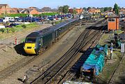 43078 attracts some attention at Honeybourne on 16 May 2019, as it takes the Long Marston line with the 5Z43 09:43 Laira to Long Marston ECS. 43091 is bringing up the rear. Whilst HSTs were until recently commonplace on the tracks through the station on the left, it is only these off lease storage moves that bring them to this line. |