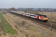 43304 speeds past Wadborough on 25 March 2011 with the 1S51 12:23 Plymouth to Glasgow CrossCountry service. This was the final day of period of high pressure, that ensured cloud free skies and very warm (for the time of year) temperatures. |
