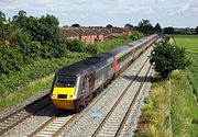 43366 leads the 1S51 12:23 Plymouth to Glasgow Central CrossCountry service past Defford on 24 July 2012. It looks like a field of asparagus on the right, while the field on the left looks very much like a 'set aside' out of production field. |