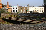 A remarkable survivor in the heart of a large city. The small turntable at Dublin Connolly station is pictured on 24 May 2018. Even more noteworthy than the fact that this vintage piece of equipment has survived in such an urban location, is the fact that until a few months before this picture was taken it was still rail connected, and had been in use until recently! It had been used to turn preserved steam locomotives on railtours, but its small size meant that even the diminutive Dublin & South Eastern Railway 2-6-0 No. 461 was a tight fit. Note the adjacent water tower. |