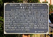 In addition to preserving the track, buildings, and of course the rolling stock, Britain's preserved railways also contain a myriad of smaller preserved artifacts. This cast iron Great Western Railway trespass notice was pictured at Toddington, on the Gloucestershire Warwickshire Railway, on 29 September 2013. |