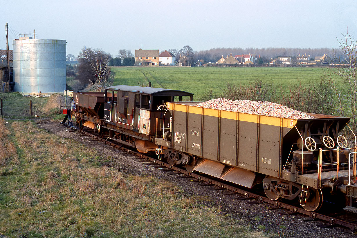 An interesting and now historic view of the former Shipston-on-Stour branch at Moreton-in-Marsh station, photographed on 5 April 1984. The Shipston-on-Stour branch started life as the Stratford and Moreton Tramway, opening as early as 1826. The branch to Shipston followed ten years later, and the line was later converted to a conventional railway, with the tramway section to Stratford-upon-Avon being lifted in 1918. This view shows the truncated remains of the line at Moreton, with the branch's route now blocked by a modern silo. This remained as a siding for many tears, and is here playing host to a ballast train waiting for the following weekend's engineering works. I cannot quite read the number of the ZFV Dogfish wagons against the buffer stop, but the ZUV Shark plough brake van is DB993904, and the loaded YGH Sealion hopper in the foreground is DB982630. |