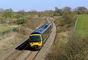 165121 is just a few hundred yards into its journey, as it approaches Little Bedwyn on 3 December 2025 with the 2T14 11:58 Bedwyn to Newbury GWR service. The 15th century stone spire of Little Bedwyn church can be seen in the distance. |