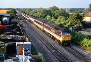 Instantly recognisable because of its non-standard yellow window modification. L414 (51350, 59502 & 51392) passes Hinksey Yard on 1 August 1991 with the 2C41 13:15 Banbury to Reading Network SouthEast service. |