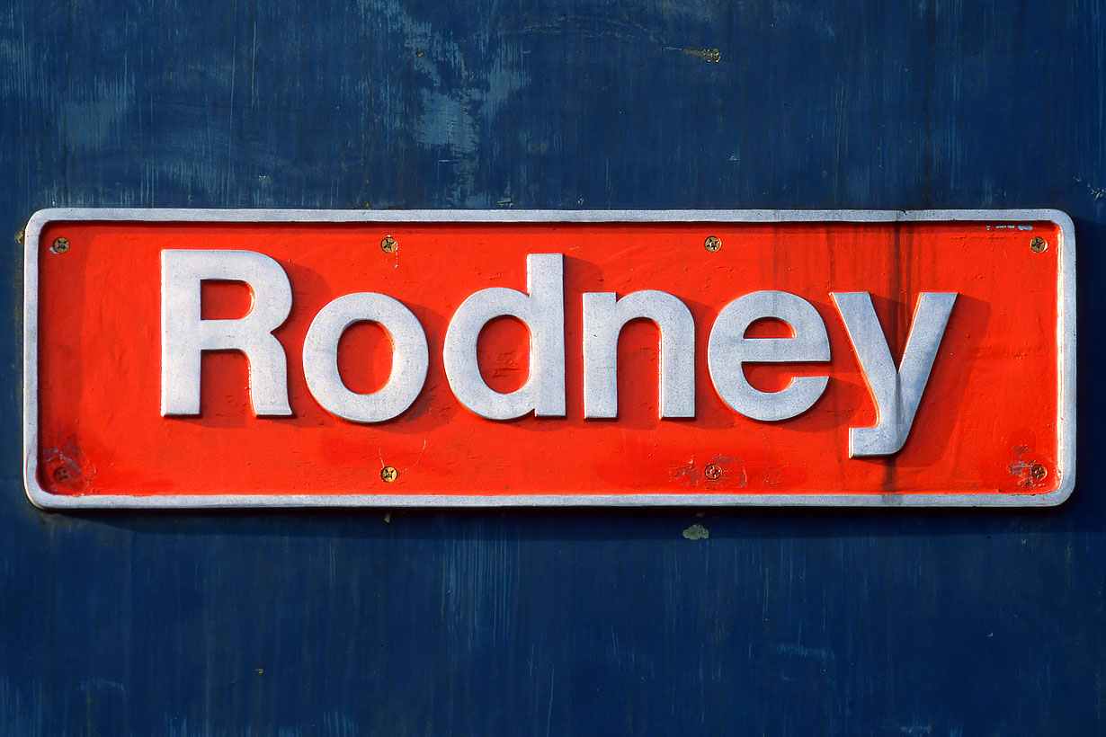50021 received the name Rodney on 31 July 1978, commemorating the 1920s Royal Navy battleship HMS Rodney. The nameplate is pictured here at Toddington on 12 December 1992, shortly after the loco had arrived for its brief stay on the Gloucestershire Warwickshire Railway. |