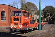 Much more modern than all the other vehicles at the Crich Tramway Village, former Corydon Tramlink no.058 John Gardner is pictured with its trailer (061) in the museum's depot yard on 15 October 2023. It was built for German state railway company Deutsche Bahn in 1978. |